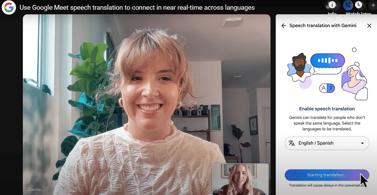 Google Meet currently supports five Latin-based language pairs (English to and from Spanish, German, French, Italian, Portuguese)